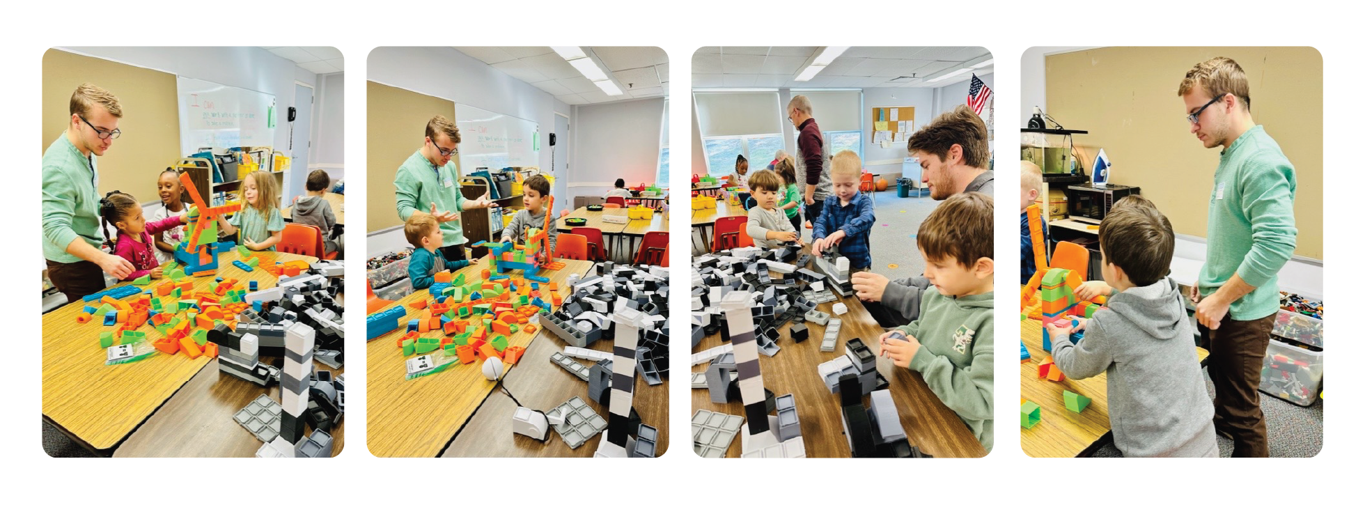 "You demonstrated how to build with the materials, showing students how to manipulate them while introducing vocabulary related to the activity, such as "balance," "stability," "stack," and "rotate." As they worked on stacking or fitting pieces together, the students improved their fine motor skills by manipulating small parts."